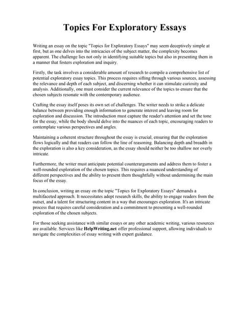 Read Online topics for exploratory essays Epub